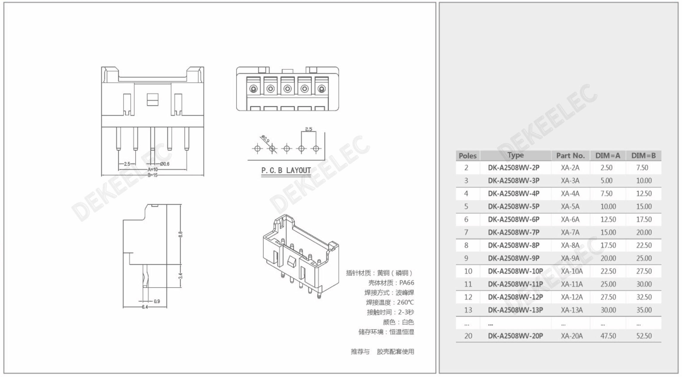 优点:1.采用强力锁定机构。2.采用了防焊料开裂措施。3.低插入力化。4.插入导向机构。5.适用于电路板自动封装。6.极性定位柱。